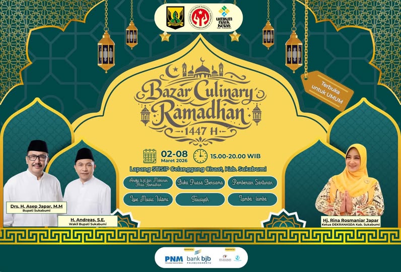 Masyarakat Kabupaten Sukabumi dan sekitarnya diundang untuk hadir dan meramaikan Bazar Culinary Ramadhan 1447 H, menjadikan bulan suci ini semakin bermakna dengan kebersamaan, keberkahan, dan semangat berbagi. 🌙✨