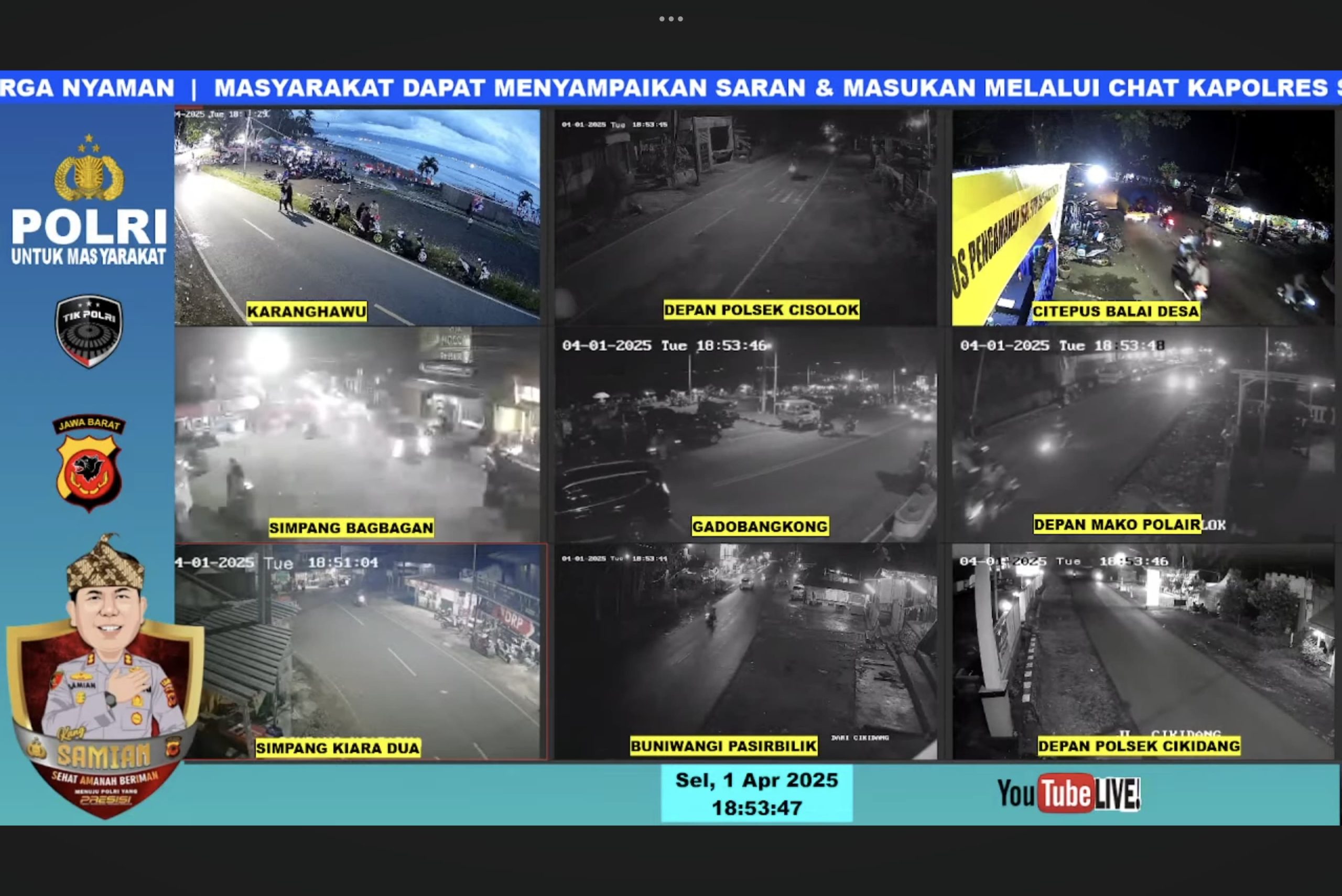 Selain itu untuk memudahkan akses informasi, Polres Sukabumi menyediakan siaran langsung CCTV yang dapat diakses oleh masyarakat melalui kanal YouTube resmi Polres Sukabumi.