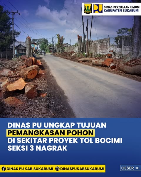 tatarpasundanews.com – Sukabumi, Dinas Pekerjaan Umum (PU) Kabupaten Sukabumi menegaskan bahwa pemangkasan sejumlah pohon di sekitar area proyek pembangunan Tol Bogor–Ciawi–Sukabumi (Bocimi) Seksi 3 di wilayah Kecamatan Nagrak dilakukan semata-mata demi alasan keselamatan dan keamanan pengguna jalan.