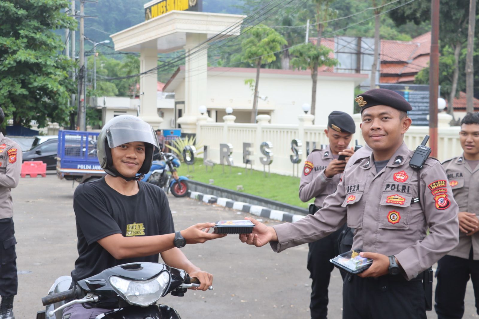 tatarpasundanews.com- Sukabumi, Senin 03/02/2025, Polres Sukabumi melakukan aksi sosial dengan membagikan takjil gratis kepada pengguna jalan di depan Mako Polres Sukabumi dalam rangka memeriahkan bulan suci ramadhan.