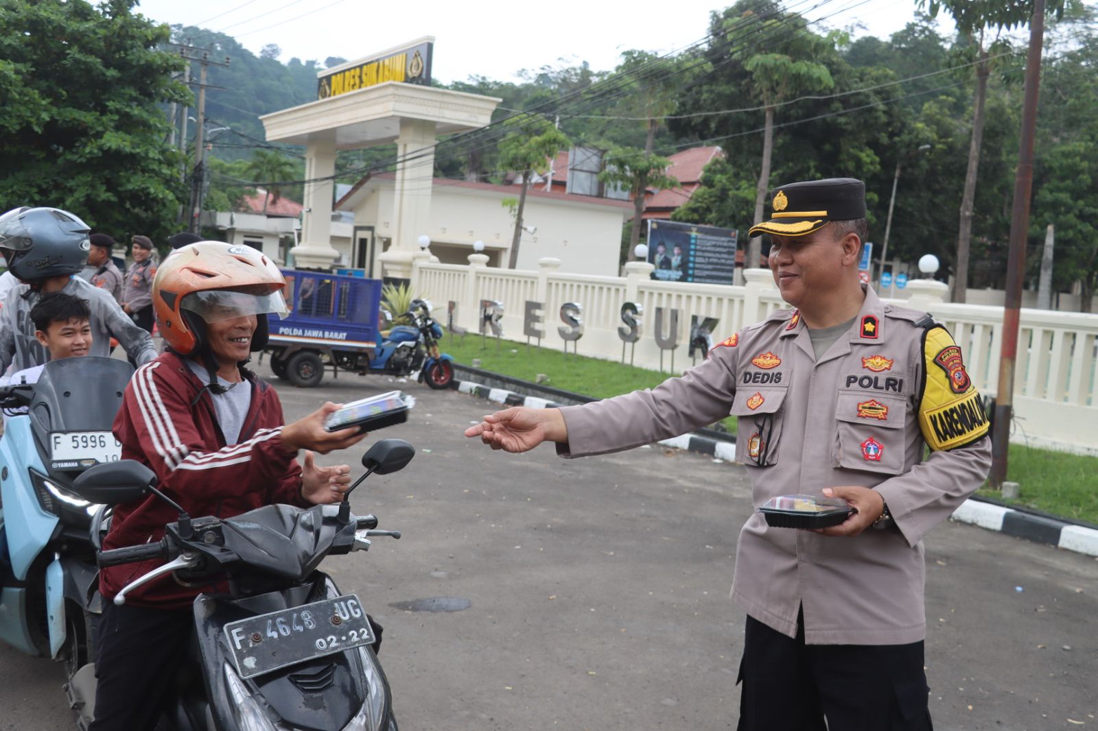 Menurut Kapolres Sukabumi, AKBP Dr. Samian, kegiatan ini merupakan bentuk kepedulian dan kebersamaan dengan masyarakat yang sedang menjalankan ibadah puasa. “Kami ingin berbagi kebahagiaan di bulan Ramadan ini dengan memberikan takjil kepada pengendara dan masyarakat sekitar. Semoga ini bisa bermanfaat dan menjadi ladang amal bagi kita semua,” ujarnya.